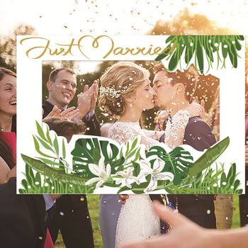 Venta al por mayor de accesorios para cabina de fotos de fiesta de verano hoja de tortuga hawaiana boda marco de fotos de papel de mano conjunto decoraciones de fiesta