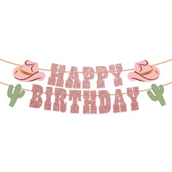 יום הולדת שמח קאובוי נצנצים נייר באנר קאובוי המערבי מסיבה קישוט יום הולדת אספקה