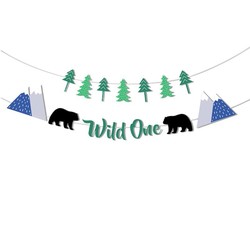 녹색 숲 테마 곰 화환 케이크 토퍼 파티 장식 용품 아기 1st Wild One 생일 배너